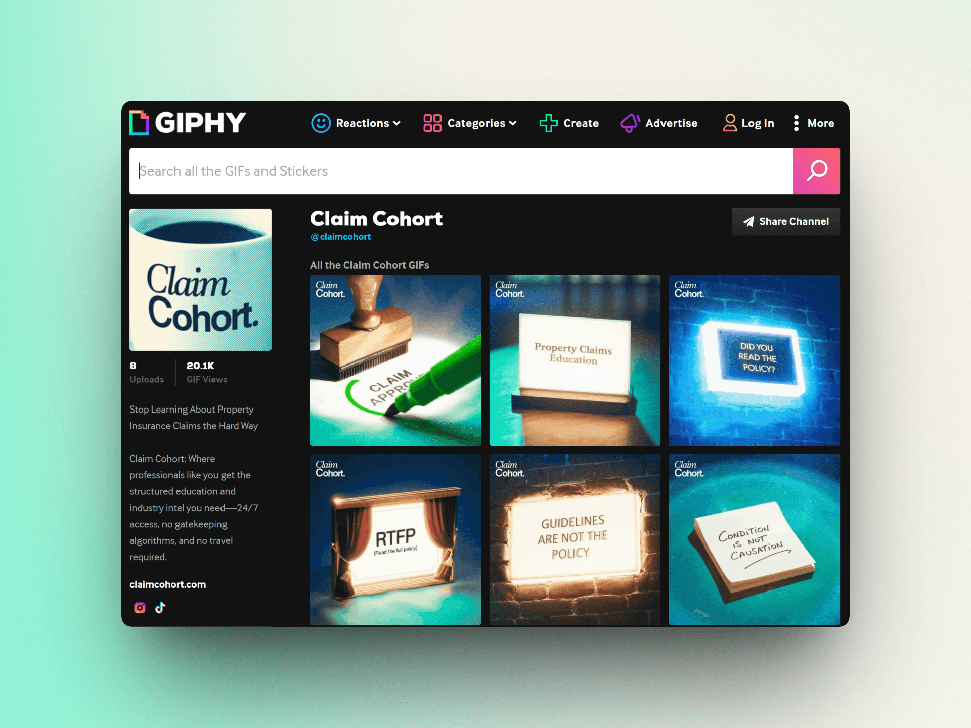 Kuva Media delivered a comprehensive, multi-disciplinary creative engagement for Claim Cohort, building the brand from the ground up and carrying it across every audience-facing touchpoint. The brand identity established a distinctive visual language — professional enough to earn trust in the insurance industry, bold enough to stand apart from legacy association aesthetics. The website design translated that identity into a conversion-focused digital experience, guiding prospects from awareness to application with clarity and confidence. Course graphic design brought the educational content to life with consistent, polished visuals that reinforce credibility and improve the learner experience across every module. Video production and editing elevated the platform's founder-led storytelling, creating engaging content that connects Sarah Parker's expertise with her audience in an authentic and compelling way. To extend the brand's reach beyond traditional channels, Kuva Media developed a suite of branded GIFs distributed through the GIPHY API — a guerrilla marketing play that embeds Claim Cohort's identity directly into everyday conversation. Searchable and usable across Facebook, Instagram, Messenger, WhatsApp, Discord, and every platform integrated with GIPHY, these animated assets put the brand in the hands of the community itself, turning member interactions into organic brand impressions at scale. Every deliverable was built to work together — a unified creative ecosystem that positions Claim Cohort as the professional home base for property insurance claims professionals nationwide.